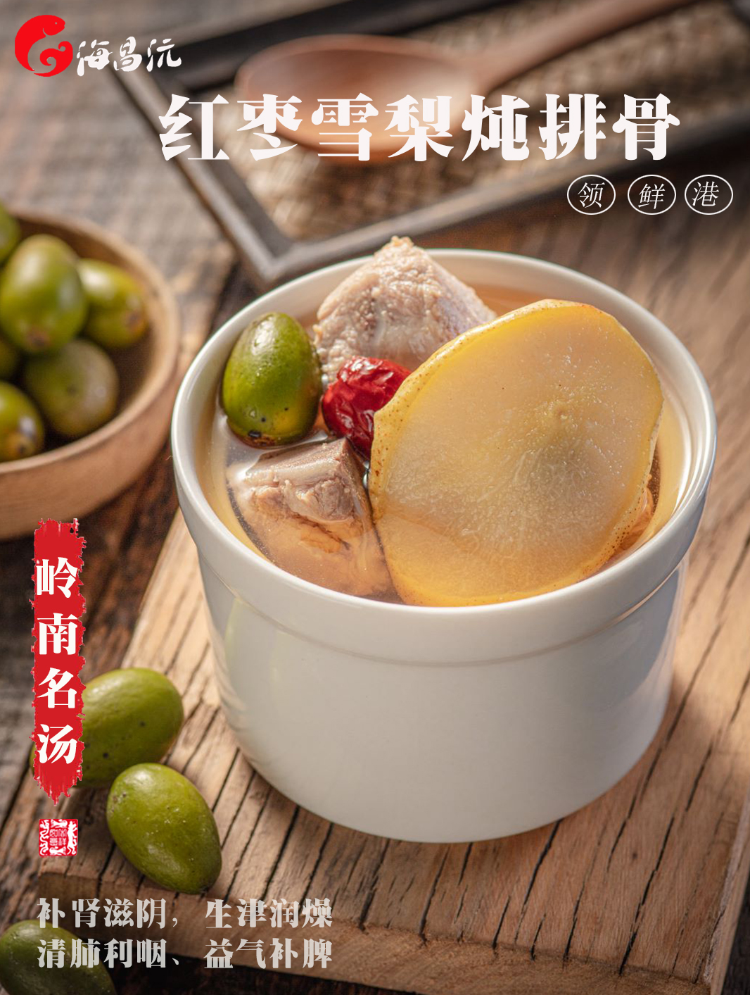 功效:恢复体力缓解疲劳,延缓衰老,促进消化提高肠胃功能 黑金蒜炖竹丝鸡 功效:健脾养胃,润肺养心,抗氧化,改善亚健康,增进食欲和促进消化。 红枣雪梨炖排骨 功效:补肾滋阴,生津润燥,改善皮肤肤质,补脾和胃、益气生津,可缓解皮肤干燥、咽喉干痒,以及肺阴不足引起的千咳少痰口干。 享受鲜美的炖汤,让身体每天都元气满满!